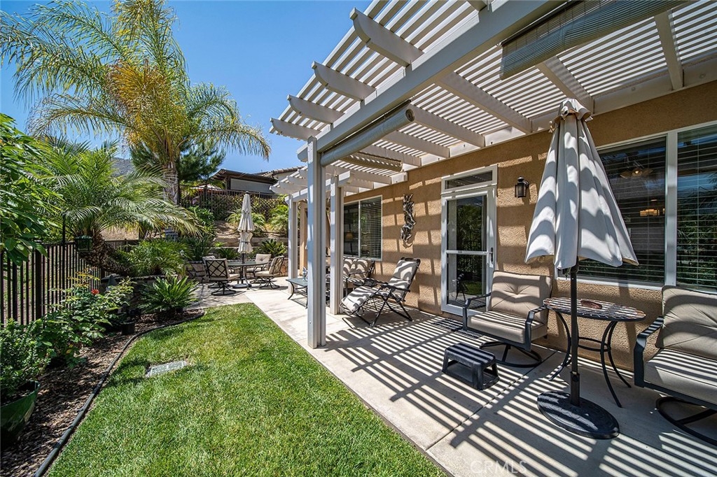 Welcome to the highly coveted Trilogy at Glen Ivy - a private 55+ active adult gated community where you can experience luxurious resort-style living at its finest. As you drive up to 23854 Fawnskin Dr, you are greeted by the landscaped curb appeal and stunning views of the rolling hills. With 1501 sq. ft. of comfortable living space, this one-story beauty was installed with solar and features 2 spacious bedrooms (with engineered hardwood flooring under the carpet). The primary connects to an ensuite bathroom with dual vanities and a walk-in closet. You have direct access from the inside of the home to the attached 2-car garage and a separate laundry area with extra cabinets and shelves for storage. You’ll love the charming kitchen that opens up to the cozy dining and living areas. Just off of the family room is a convenient den that would serve as the perfect home office or study room. It has its own separate entrance to the meticulously maintained backyard that will serve as your own slice of personal paradise. Imagine sipping on a refreshing cup of coffee as you enjoy your peaceful summer afternoon under the pergola. Or head over to the Pacific Crest Lodge, the 13,000 sq. ft. association clubhouse including meeting and banquet rooms, catering kitchen, recreation centers, and educational classes. You don’t want to miss the Blue Water Sports Club where you have exclusive access to the fully-equipped fitness centers, indoor and outdoor pools/spa, walking track and trails, various sports courts, aerobic studio, and spacious ampitheater. And we can’t forget about the renowned 18-hole Glen Ivy Golf Course and The Nines Restaurant. Centrally located, you are also just minutes away from the 15 fwy and Dos Lagos Shopping Center. From world-class amenities to modern living, this home has everything you have been dreaming of - so make sure to come see it for yourself while it lasts!