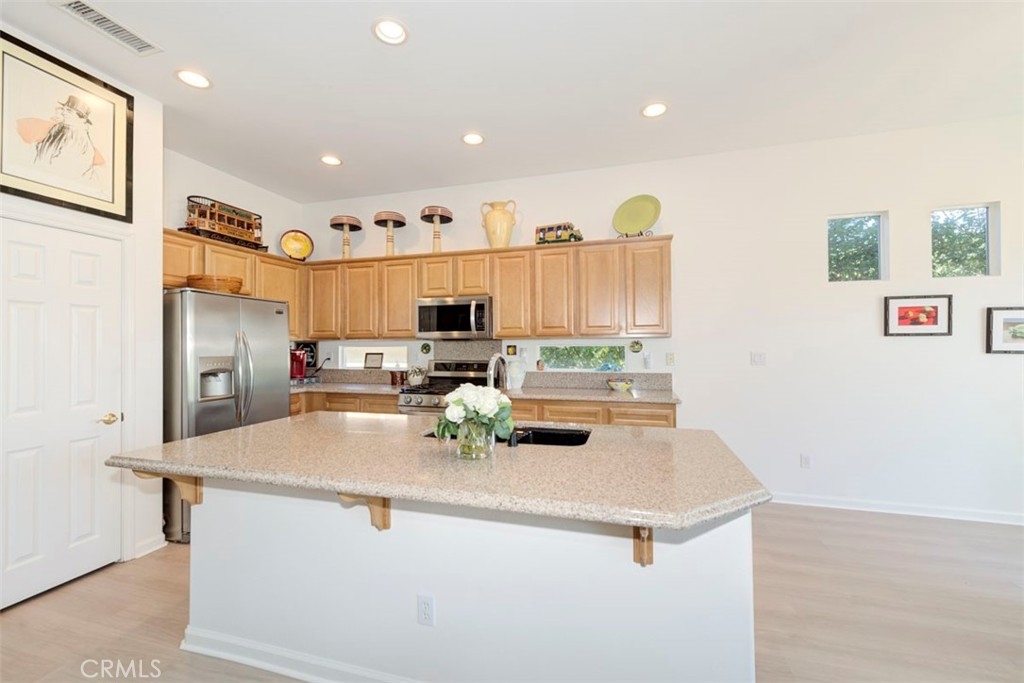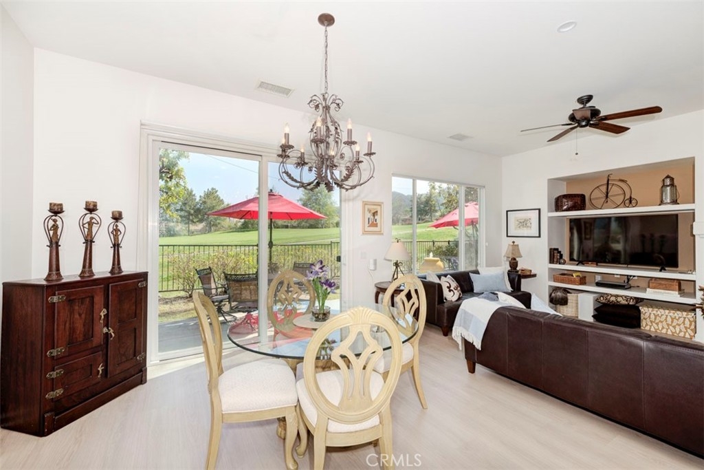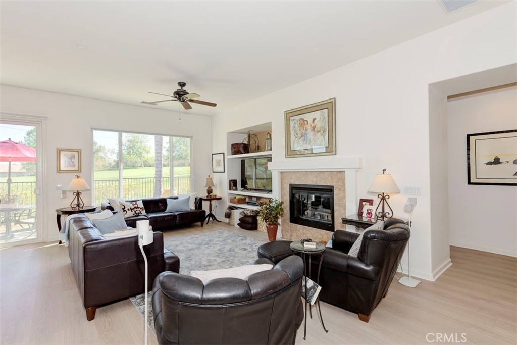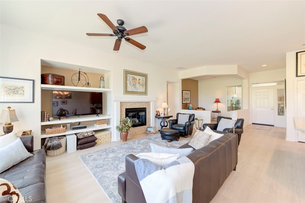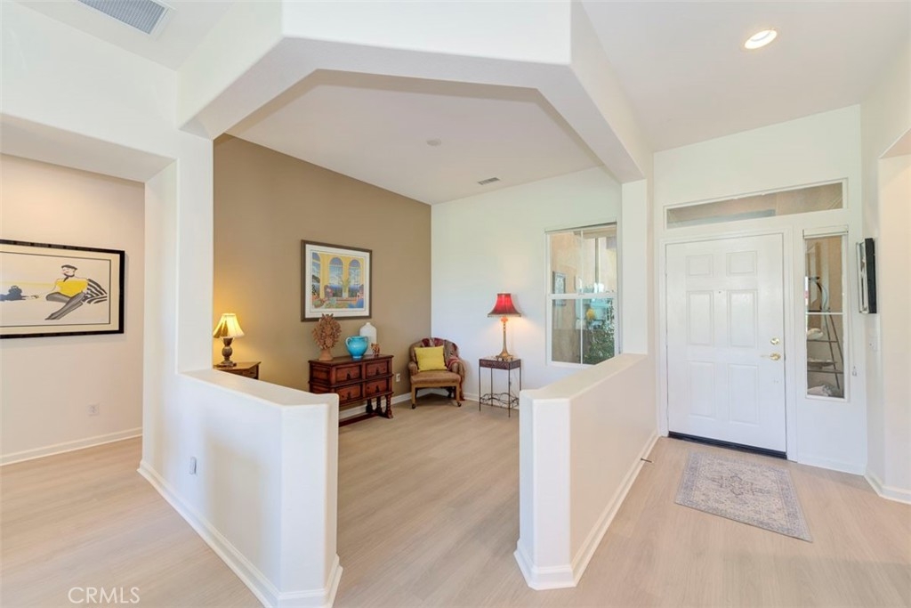 Located on the 10th Fairway with golf course views, this Craftsman style home on a single loaded street in highly desired Shea Home Inaja model has new Luxury Vinyl Plank flooring and fresh Interior Paint in the gated community of Trilogy. This Expanded model by Shea Homes increased the square footage in Primary Closet and Laundry room by approximately 30 sqft. Secluded and privately located through the Deergrass gates, enjoy breathtaking golf course and Cleveland National Forest Mountain views visible from the principal bedroom and living areas. Built in 2004, this home displays 10 foot ceilings creating an impressive atmosphere perfect for casual entertaining. Fresh paint and new luxury vinyl floors make this home Ready to Move in! The expansive outward-facing kitchen that opens to the great room makes it ideal for gatherings. Whether hosting formal dinners in the separate dining room/flex space room or enjoying a cozy meal in the kitchen nook, this home is designed for both relaxation & entertainment. A cozy gas fireplace completes the living room with a view to the mountains. The en-suite guest suite ensures privacy and comfort for your visitors. The primary suite includes a spacious walk-in closet w/ custom organizers & access to sit down golf course views and it’s own patio off the primary bedroom—perfect for enjoying your morning coffee or evening drink. A rear patio and front porch offer ample space for dining al fresco. Enjoy natural light from large premium dual-pane windows. A shade tree lined street greets you with mountain views. Low-maintenance design includes a concrete-tiled roof, stucco exterior and a 5 year new AC system. The 4,792 square-foot premium Shea lot also includes LG stainless steel appliances, Kohler sink, rain gutters, overhead & cabinet storage in garage, gas BBQ outlet, wired for speakers, exterior outlets for holiday lights with a short walk on the golf cart path to the Golf Shop and Restaurant. Located between Temecula Wine Country & Orange County, Trilogy offers exceptional 55+ living with amenities like a fitness center, indoor/outdoor pools, tennis & Activities/Clubs.