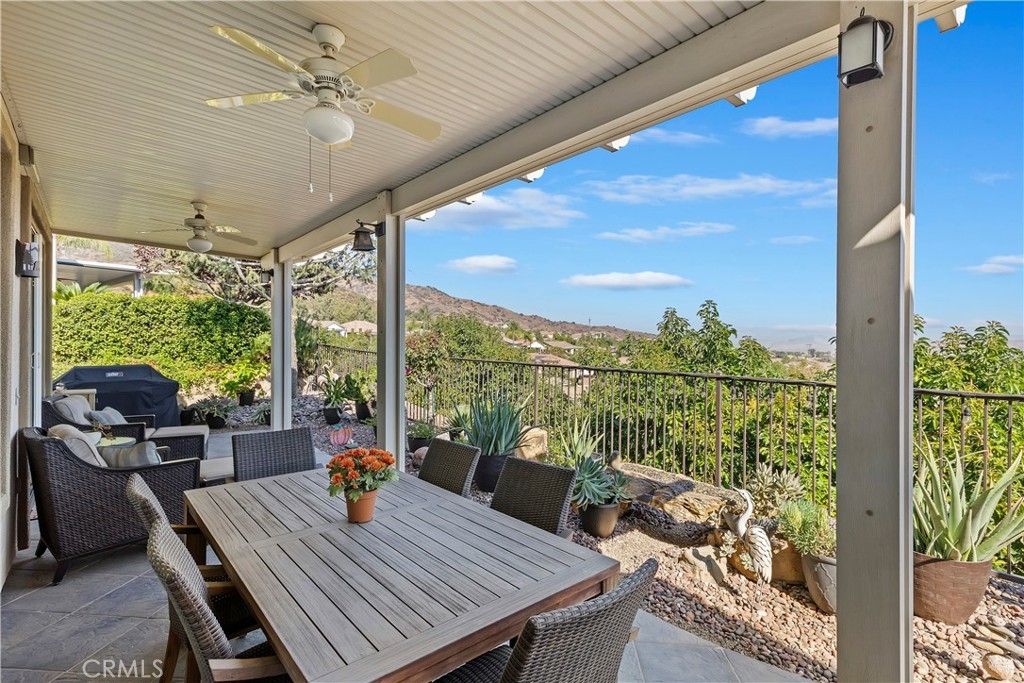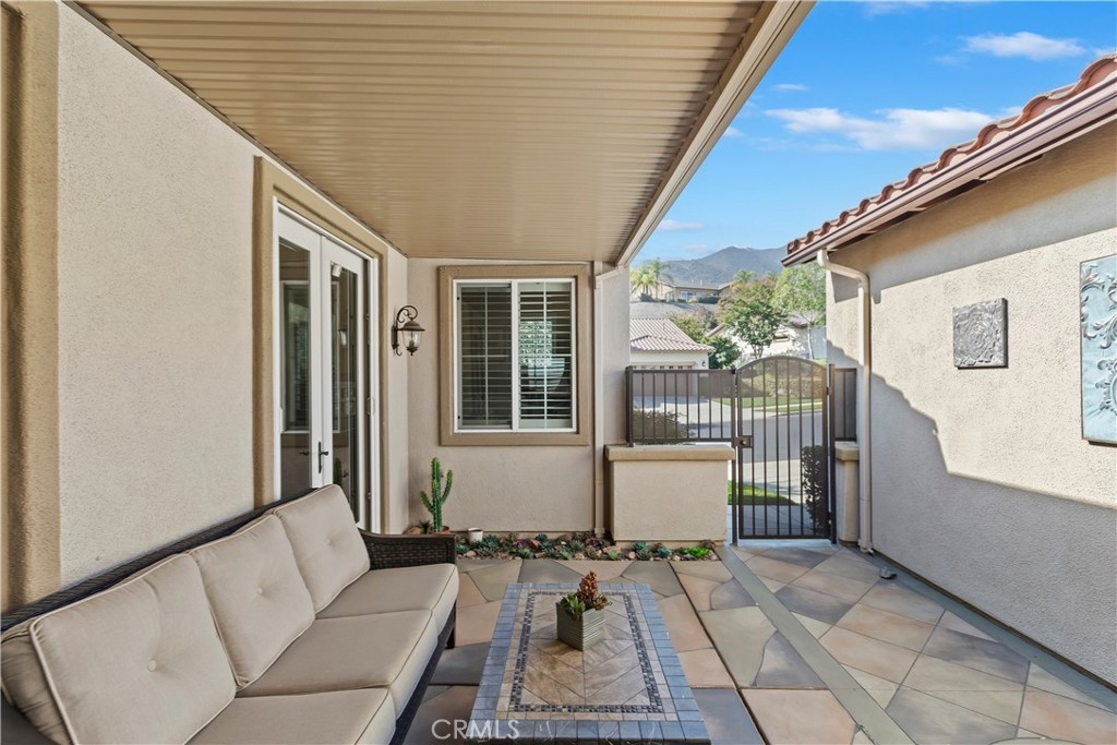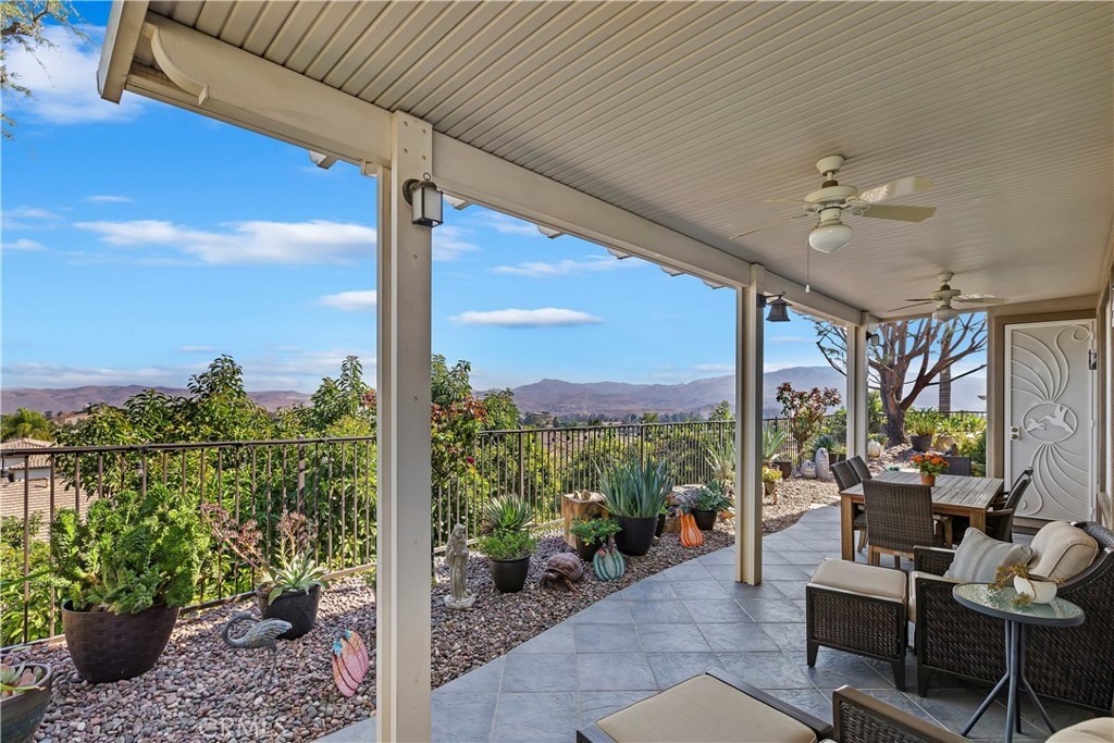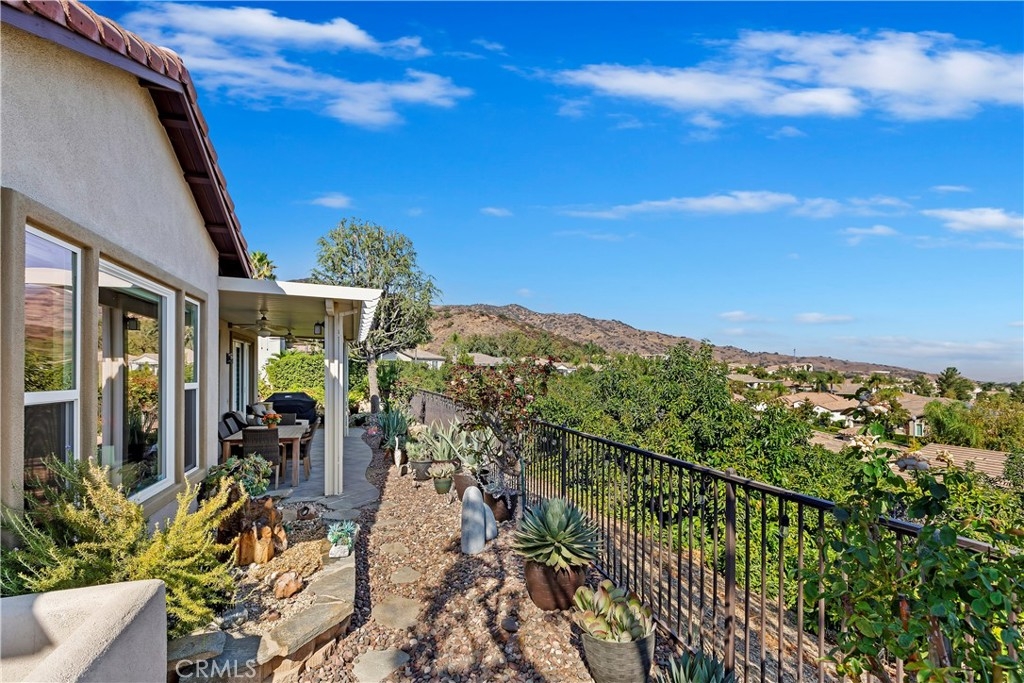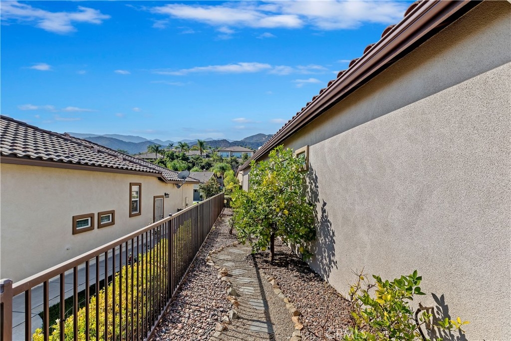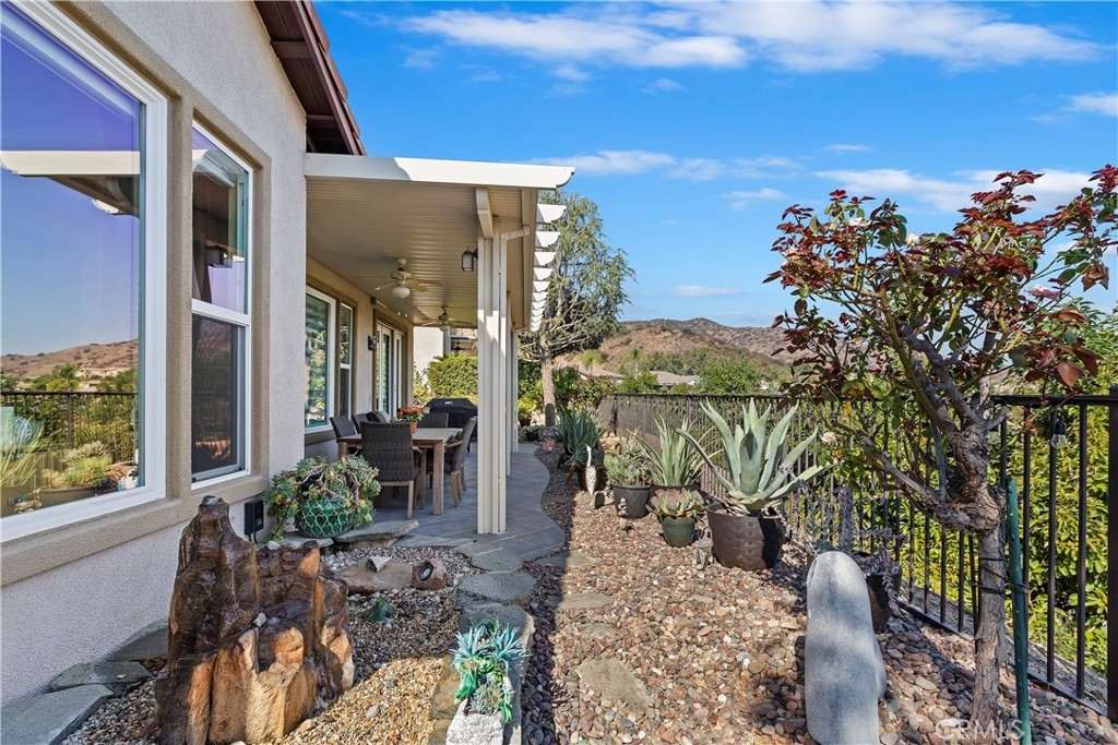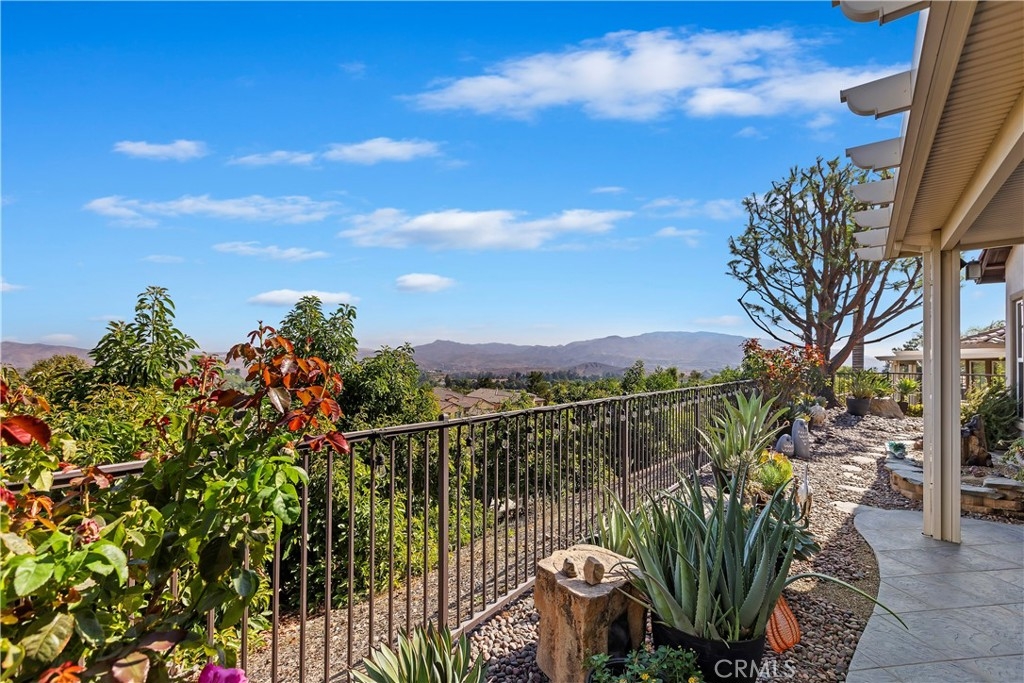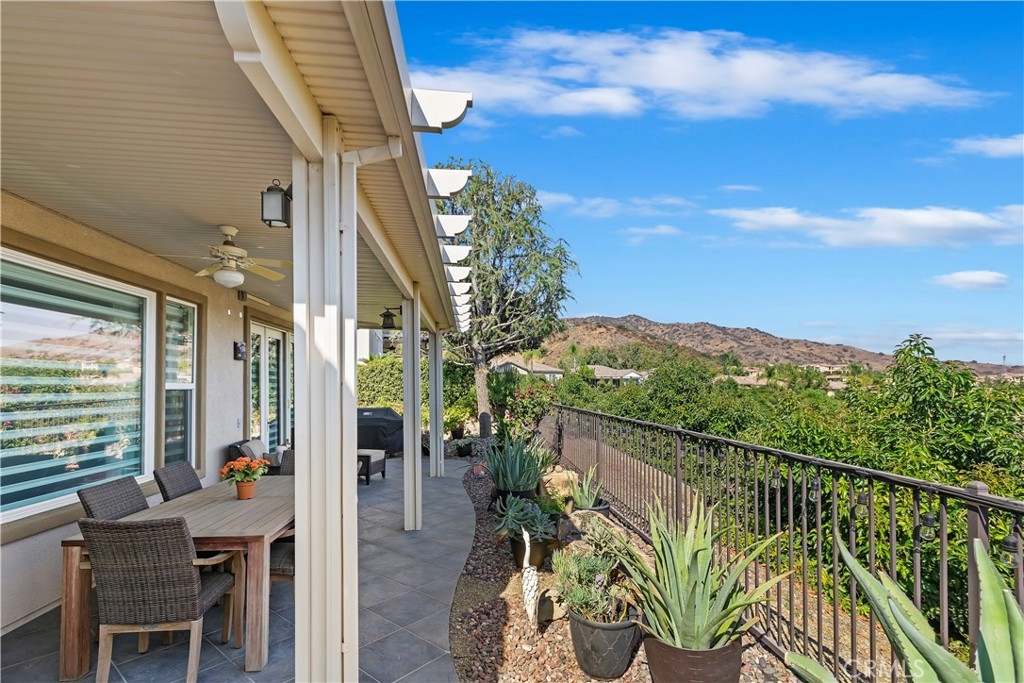 Welcome to the "Best of the Best" located in the beautiful and tranquil 55+ community of Trilogy at Glen Ivy. Surrounded by a Ted Robinson golf course and nestled at the base of the Cleveland National Forest, you couldn't ask for a better location. This gorgeous home has had $150,000 in upgraded amenities added to it. Let's start with the amazing view of city lights all of the way to the mountains. Some of the upgraded amenities include beautifully stained concrete in the entry courtyard that includes an alumawood cover. Once you enter the home you will be greeted by new Cerdomus Italian Porcelain tile that looks just like wood. Then you'll enter the kitchen that opens to the Great room providing the perfect place to entertain family and guest while enjoying the remarkable view through the large window. The expansive kitchen island is topped with an amazing piece granite, which also includes a double oven and convection microwave and gorgeous cabinetry. The Great room offers remote controlled Hunter Douglas Pirouette shades, the fireplace has had stone added to it and surrounded by the custom built in entertainment center with wet bar. There are two sets of French Doors, one leading the the courtyard and one to the backyard. Both of them with remote controlled shades. The master suite also includes a custom built-in cabinets. The En Suite bathroom includes a large jacuzzi tub, separate shower with frameless enclosure. A very unique feature is the homes has a 2 room suite that is perfect for the in-laws, guest or a care giver. Ceiling fans are throughout the home. The backyard is set up with a large alumawood patio cover with ceiling fans affording the perfect place to sit and relax as you enjoy the amazing views. Other great features are the FULLY PAID OFF SOLAR virtually eliminating an Edison Bill. Also included is a Life Source Water System which provides amazing salt free water throughout the home and there is nothing you have to add to the system. The Trilogy community affords homeowners all of the amazing clubs and actives as well as an indoor pool/outdoor pool, indoor walking track, weight and exercise room, Tennis, pickleball, card and board rooms. This has the Home & Community of your dreams.