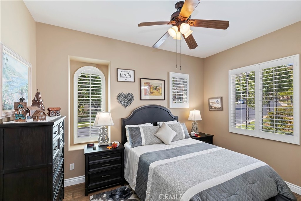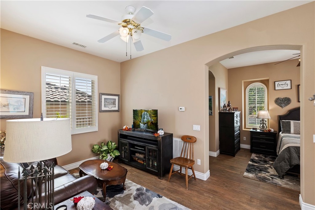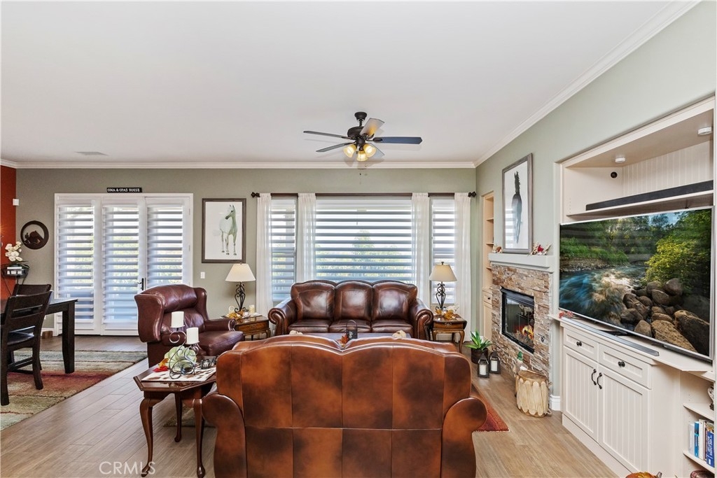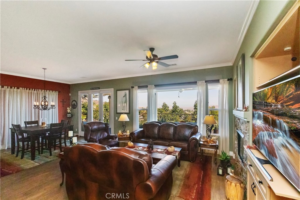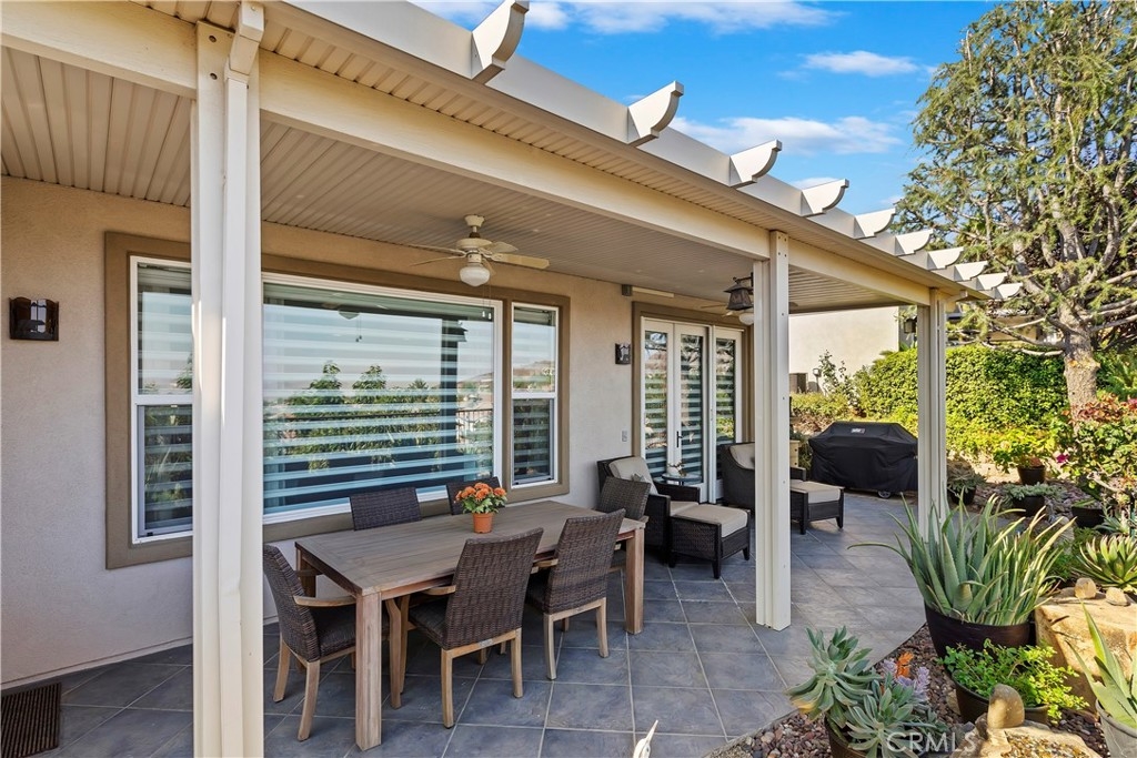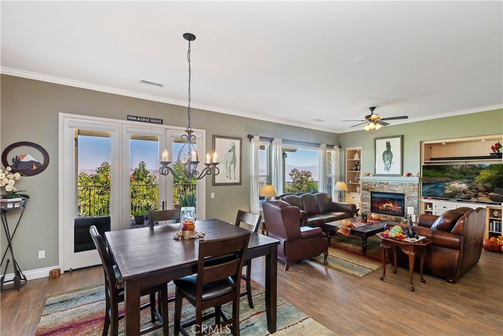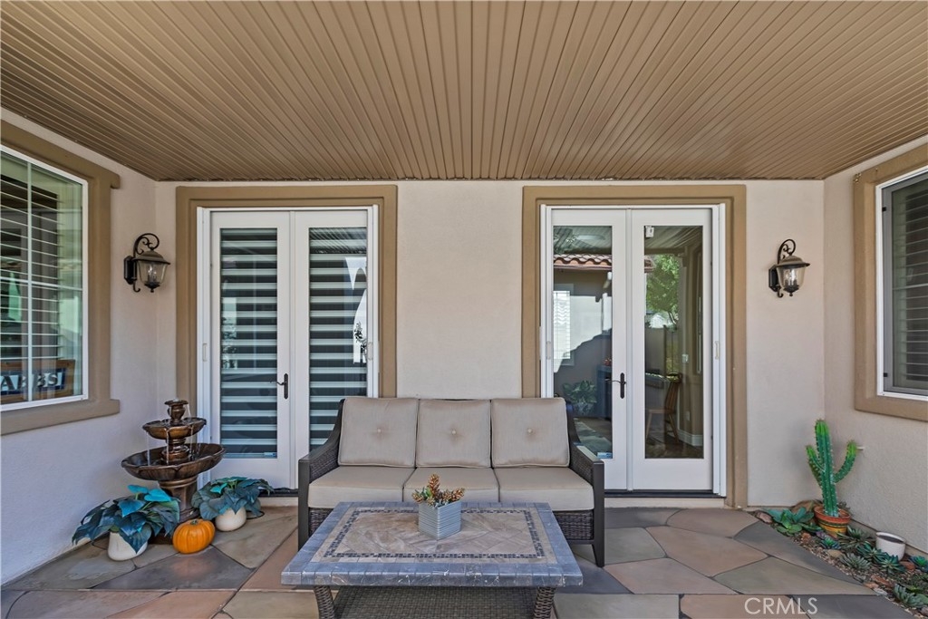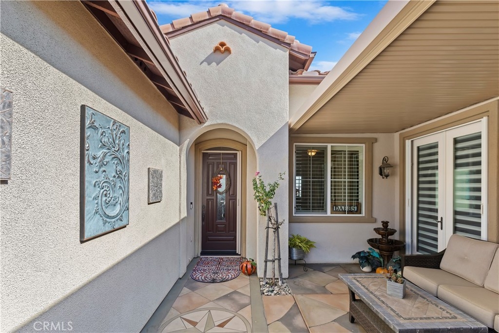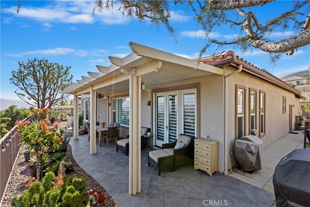 Welcome to the "Best of the Best" located in the beautiful and tranquil 55+ community of Trilogy at Glen Ivy. Surrounded by a Ted Robinson golf course and nestled at the base of the Cleveland National Forest, you couldn't ask for a better location. This gorgeous home has had $150,000 in upgraded amenities added to it. Let's start with the amazing view of city lights all of the way to the mountains. Some of the upgraded amenities include beautifully stained concrete in the entry courtyard that includes an alumawood cover. Once you enter the home you will be greeted by new Cerdomus Italian Porcelain tile that looks just like wood. Then you'll enter the kitchen that opens to the Great room providing the perfect place to entertain family and guest while enjoying the remarkable view through the large window. The expansive kitchen island is topped with an amazing piece granite, which also includes a double oven and convection microwave and gorgeous cabinetry. The Great room offers remote controlled Hunter Douglas Pirouette shades, the fireplace has had stone added to it and surrounded by the custom built in entertainment center with wet bar. There are two sets of French Doors, one leading the the courtyard and one to the backyard. Both of them with remote controlled shades. The master suite also includes a custom built-in cabinets. The En Suite bathroom includes a large jacuzzi tub, separate shower with frameless enclosure. A very unique feature is the homes has a 2 room suite that is perfect for the in-laws, guest or a care giver. Ceiling fans are throughout the home. The backyard is set up with a large alumawood patio cover with ceiling fans affording the perfect place to sit and relax as you enjoy the amazing views. Other great features are the FULLY PAID OFF SOLAR virtually eliminating an Edison Bill. Also included is a Life Source Water System which provides amazing salt free water throughout the home and there is nothing you have to add to the system. The Trilogy community affords homeowners all of the amazing clubs and actives as well as an indoor pool/outdoor pool, indoor walking track, weight and exercise room, Tennis, pickleball, card and board rooms. This has the Home & Community of your dreams.