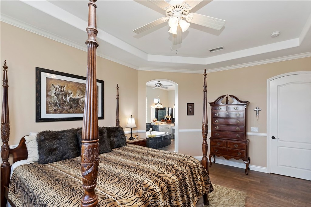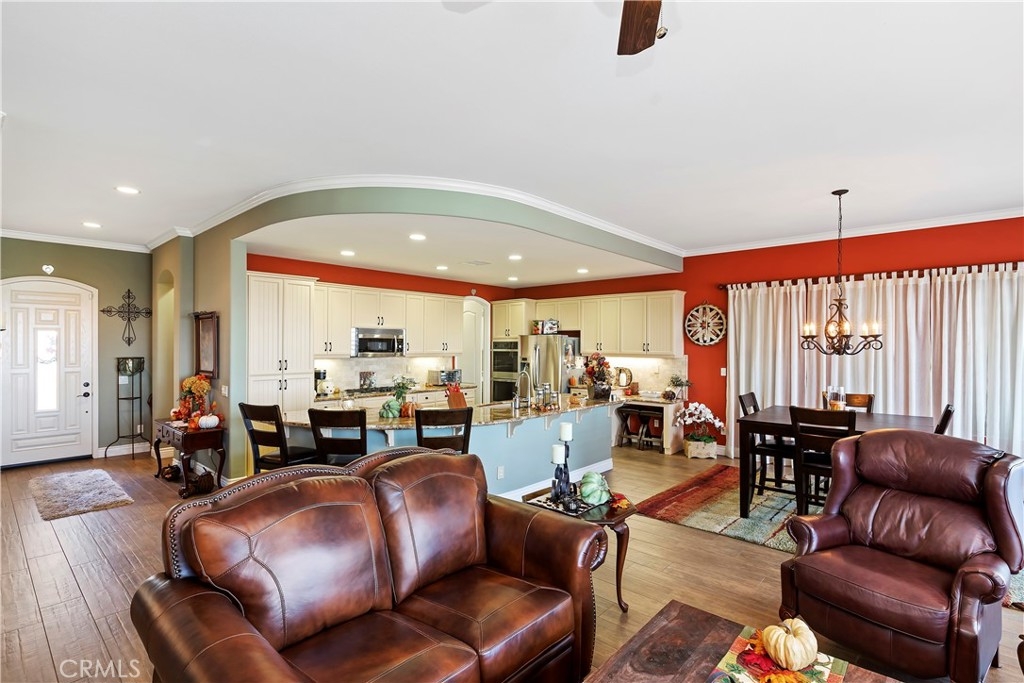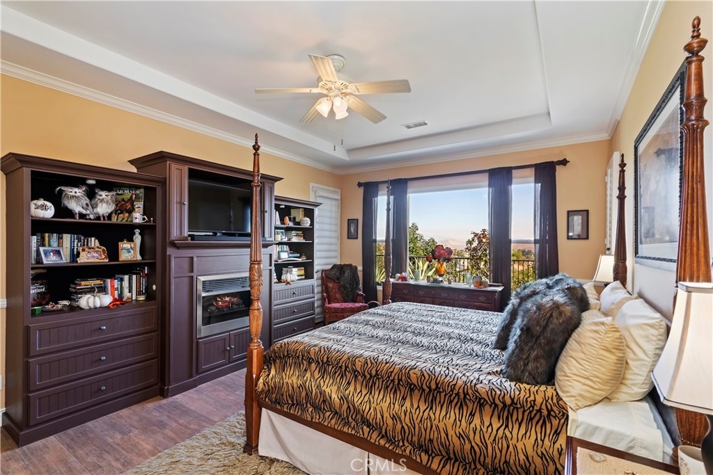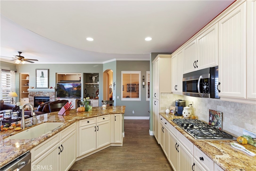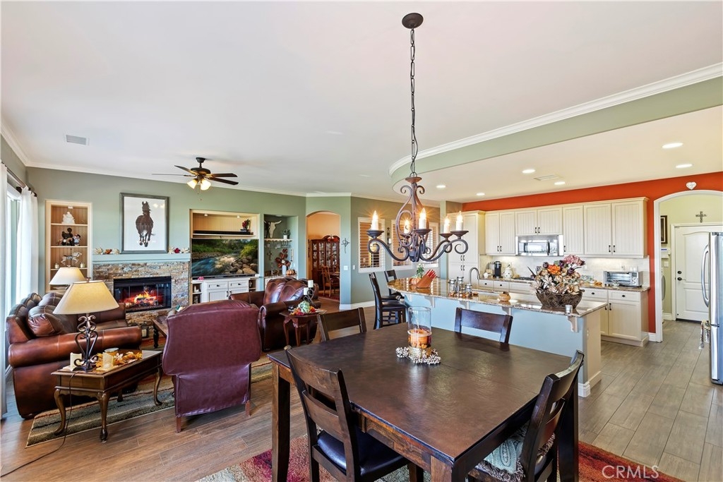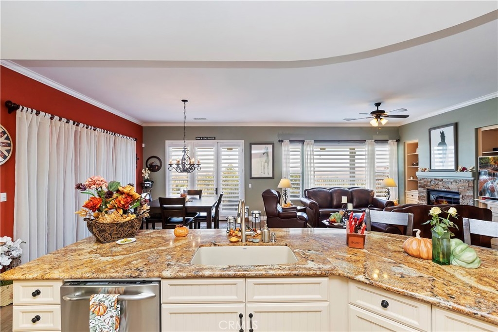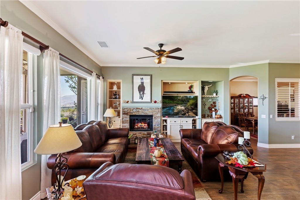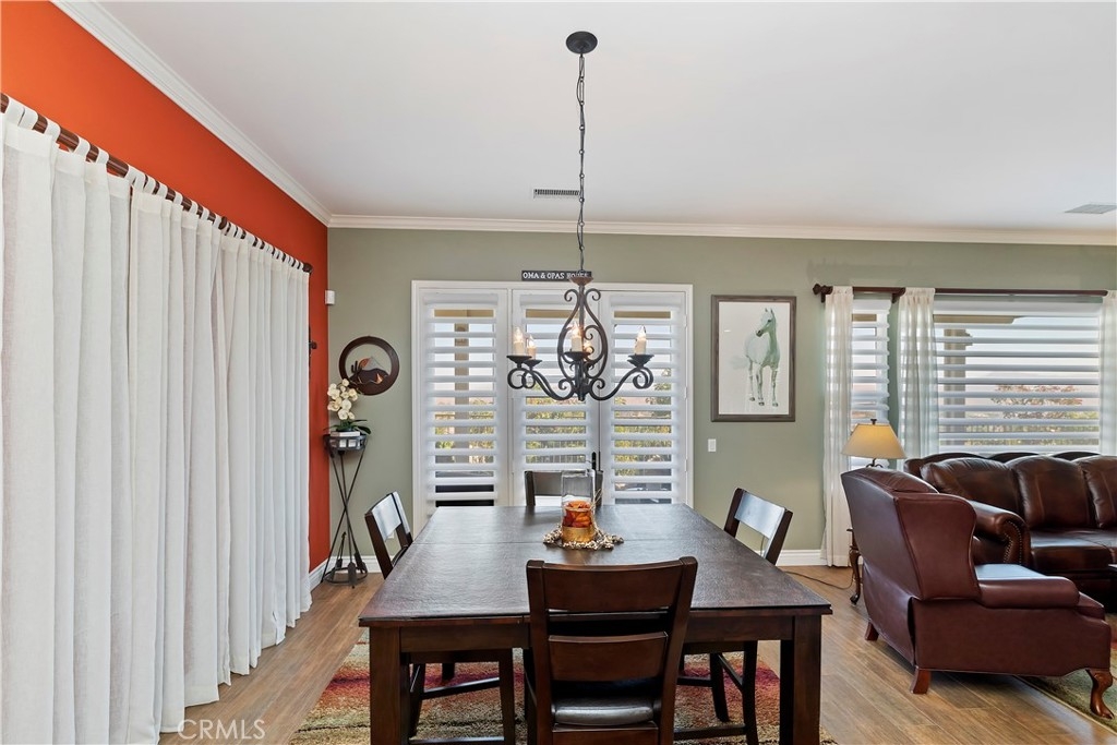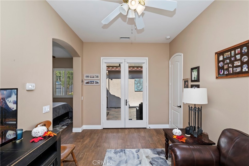 Welcome to the "Best of the Best" located in the beautiful and tranquil 55+ community of Trilogy at Glen Ivy. Surrounded by a Ted Robinson golf course and nestled at the base of the Cleveland National Forest, you couldn't ask for a better location. This gorgeous home has had $150,000 in upgraded amenities added to it. Let's start with the amazing view of city lights all of the way to the mountains. Some of the upgraded amenities include beautifully stained concrete in the entry courtyard that includes an alumawood cover. Once you enter the home you will be greeted by new Cerdomus Italian Porcelain tile that looks just like wood. Then you'll enter the kitchen that opens to the Great room providing the perfect place to entertain family and guest while enjoying the remarkable view through the large window. The expansive kitchen island is topped with an amazing piece granite, which also includes a double oven and convection microwave and gorgeous cabinetry. The Great room offers remote controlled Hunter Douglas Pirouette shades, the fireplace has had stone added to it and surrounded by the custom built in entertainment center with wet bar. There are two sets of French Doors, one leading the the courtyard and one to the backyard. Both of them with remote controlled shades. The master suite also includes a custom built-in cabinets. The En Suite bathroom includes a large jacuzzi tub, separate shower with frameless enclosure. A very unique feature is the homes has a 2 room suite that is perfect for the in-laws, guest or a care giver. Ceiling fans are throughout the home. The backyard is set up with a large alumawood patio cover with ceiling fans affording the perfect place to sit and relax as you enjoy the amazing views. Other great features are the FULLY PAID OFF SOLAR virtually eliminating an Edison Bill. Also included is a Life Source Water System which provides amazing salt free water throughout the home and there is nothing you have to add to the system. The Trilogy community affords homeowners all of the amazing clubs and actives as well as an indoor pool/outdoor pool, indoor walking track, weight and exercise room, Tennis, pickleball, card and board rooms. This has the Home & Community of your dreams.