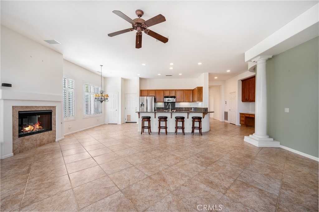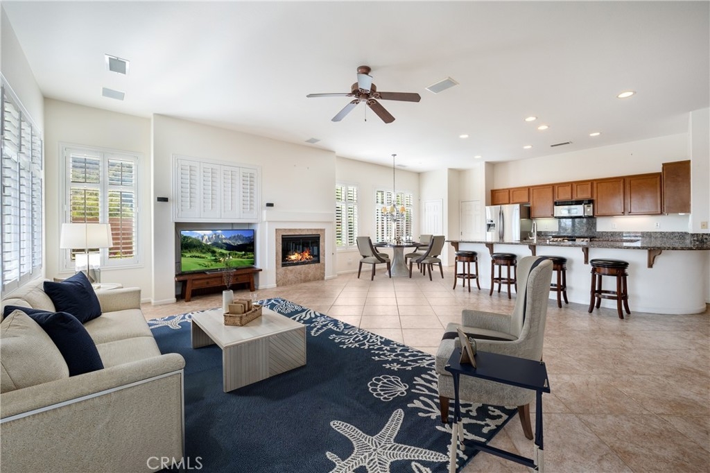 I CAN SEE FOR MILES AND MILES. This residence transcends the ordinary & invites you to embrace the extraordinary. It offers not just a place to live but an experience that extends beyond your doorstep. Perched atop a gentle rise, the home boasts unrivaled panoramic views that stretch as far as the eye can see, as well as a view of the golf course. Whether you're enjoying your morning coffee or entertaining guests, every moment is framed by nature's masterpiece. The changing colors of the sky create a dynamic and ever-inspiring backdrop. Escape the hustle & bustle of everyday life, this property offers a sense of privacy and seclusion, allowing you to unwind & recharge. Designed with aesthetics and functionality in mind, the architecture seamlessly integrates with the surroundings. Nestled within this charming home are two bedrooms & 2 baths, and a versatile flex room that seamlessly transitions between an office, a hobby room, or a guest room, creating a space that adapts to your lifestyle. The master bedroom boasts an ensuite bathroom, for convenience & privacy. The heart of the home unfolds in an open layout, seamlessly connecting the kitchen & family room. The kitchen, a culinary haven, features elements that elevate the cooking experience. The kitchen also has a dining nook. Uncover a plethora of enhancements that elevate this home to extraordinary heights. You're not just purchasing a house; you're investing in a lifestyle. Glen Ivy golf course meanders throughout the gated community. The outdoor amenities include tennis, pickleball & bocce ball courts. Indoors, a state-of-the-art gym as well as a walking & jogging track overlooking the indoor lap pool.