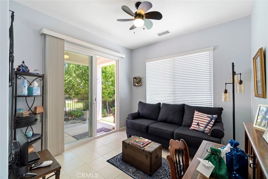 Are you looking for a home that feels like resort living? Then, HERE it IS! A beautiful, turn key, single level home with 2 bedrooms en-suite at Trilogy at Glen Ivy, Resort Living for active adults, a 55+ active adult gated community. Nestled against the mountains of the Cleveland National Forest, and the Glen Ivy Hot Springs. The open floor plan invites you in and allows you to enjoy the flow of the bright kitchen with counter seating. The dining room spills into the living room with a cozy fireplace. The home has a generous nook area for a private office/den. Features in the home also include newer tile floors throughout, ceiling fans, inside separate laundry room with sink, low maintenance and beautiful landscaped back patio. The master bedroom is spacious with ample space for a sitting/reading area, and the en suite bathroom with walk in closet, dual vanities, walk in shower and separate toilet room. The attached 2 car garage has plenty of storage and utility sink. Enjoy the HOA amenities and resort life style that includes Indoor,outdoor pools ,tennis courts, state of the art gym,card rooms, billiard rooms,library, 40 chartered clubs and 3 miles of hiking trails. All of this and the Ted Robinson designed Golf club at Glen Ivy for your enjoyment. This great location is close to several major shopping areas, high-end retailers, great restaurants and theaters, all just minutes away. Next door neighbors are Glen Ivy Spa and Tom's Farms market.